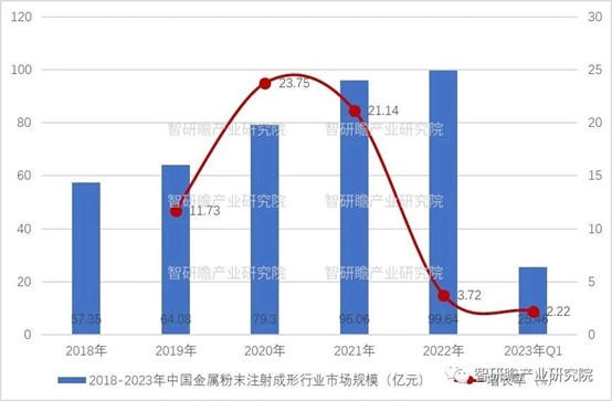圖表:2018-2023年中國(guó)金屬粉末注射成形行業(yè)市場(chǎng)規(guī)模